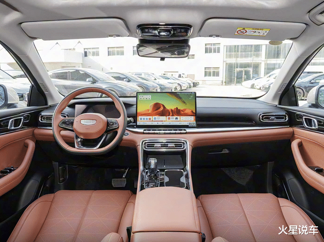进入车内,第5代帝豪采用了T型的中控台设计,14.6英寸的悬浮式中控大屏很是醒目,中控屏下方的一条镀铬饰件和金属按键也进一步增添了车内的质感。虽然由于价格的局限,车内的材料看着并不是很高级,但是也给到了大面积的软包包覆以及同级罕见的水晶档把,旷野棕、云舒灰、星夜黑三种座舱配色也可以任君选择。